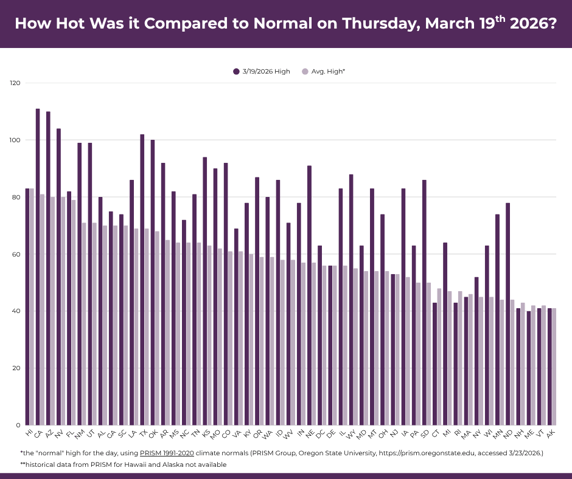 *Note: For this data, the historical “average” temperature is coming from PRISM Group (PRISM Group, Oregon State University, https://prism.oregonstate.edu, accessed 3/23/2026). Data for Hawaii and Alaska not available.